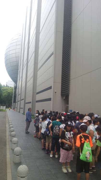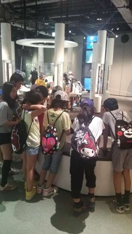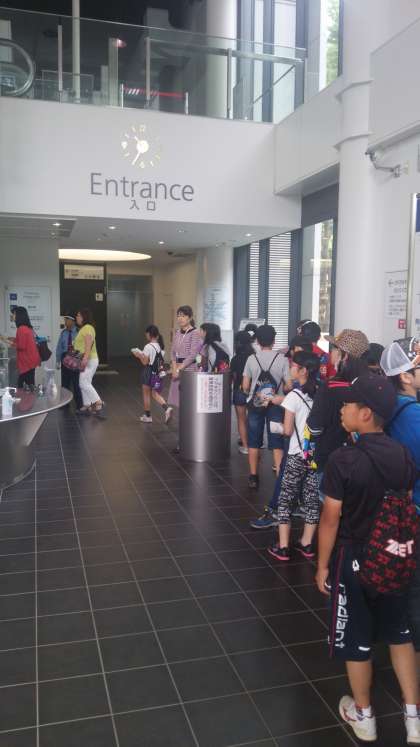 科学館に到着し,館内を見学しています。