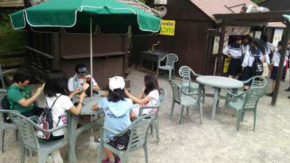 現地は,今のところ曇り空で暑すぎず,子どもたちが活動するにはちょうど良い気候のようです。昼食もグループごとに食べ始めています。