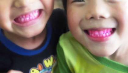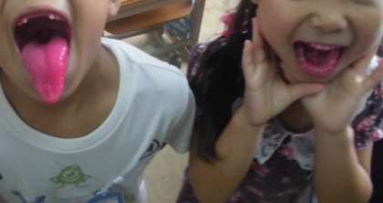 写真は,予想以上に赤くなった歯を見せに来ていた様子です。