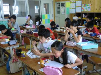 「歯の衛生週間」ということで,歯の汚れを調べ,歯のみがき方を確かめました。「思っていたよりも汚れていたので,これからがんばってみがきたいと思います。」「思っていたよりもきれいだったけど,これからも虫歯をつくらないように丁寧にみがきます。」など,子どもたちはいろいろな感想をもったようでした。