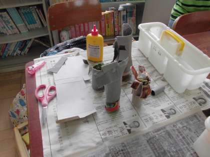厚紙や段ボール紙などを水で濡らして,曲げたり,ひねったりして色々な形に変形させます。