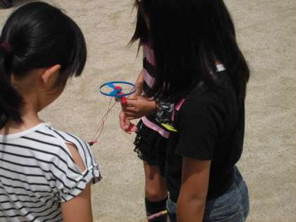 予想以上のプロペラの速さに,子どもたちも驚いていました。