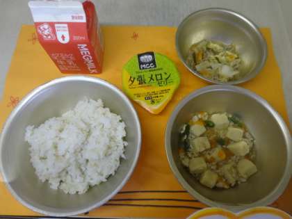 今日は,7月の新献立の「高野どうふのそぼろ煮」の登場でした。