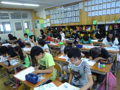 国語「ようこそ,私たちの町へ」で、パンフレットの学習をしています。そこで,5月の修学旅行で行った愛知県名古屋市を紹介するパンフレットづくりをしています。何のために作るのか,誰に見せるのかを考えて,写真を貼ったり絵を描いたり,いろいろな工夫をしながら一生懸命つくっています。