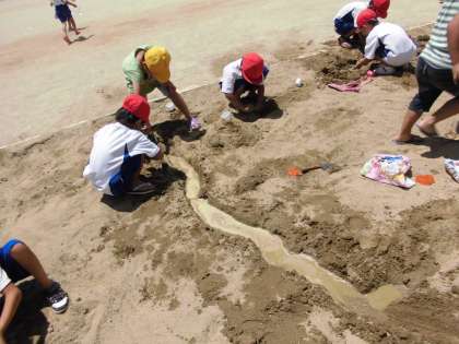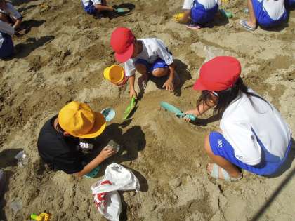 みんな体全体で砂や土の感じを味わい,楽しく学習できました。