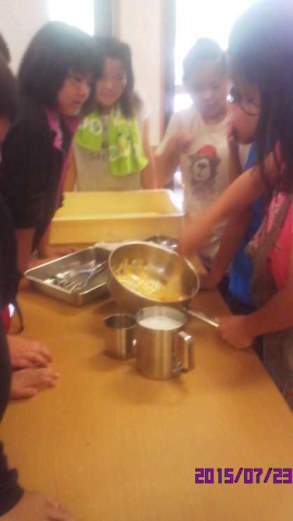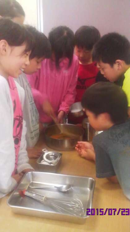 「ミルク工房」で、1組と3組は、各組4グループごとに分かれて、アイスクリーム作りに挑戦しています。