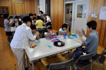 9月5日(土)神川小学校のふれあいサロンにおいて,午前10時より,社会福祉協議会と女性連絡協議会の共催で,「お一人暮らしのお年寄りとのふれあい体験活動」が行われました。小学校からは,1年生から6年生までの子どもたちがお年寄りの方々と,お話をしたり,お手玉,折り紙,あやとりなどの遊びを教えていただいたりして楽しい時間をすごしていました。。また,筝曲部からはお琴の演奏を披露し,茶道クラブの子どもたちは女性会やPTAの皆様と一緒に抹茶を立てて皆さんにお出ししてくれました。