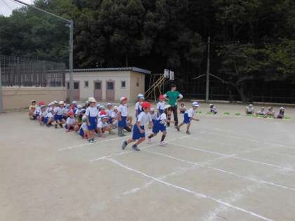 1年生は,まず50m走の練習をしました。笛の合図をしっかり聞いて,力強くゴールまで走り切っていました。