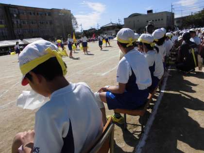 応援席で待っている間も,大きな声で力いっぱい友だちの応援をしていましたね。