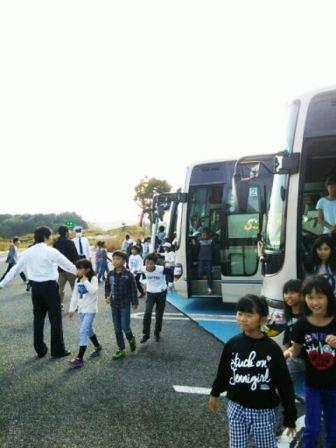 今朝は秋晴れの下,4年生(大空学級を含む)全員が出席し,出発式の後,貸し切りバスで学校を出発しました。