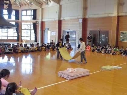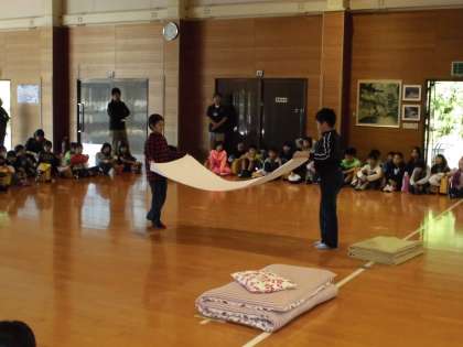 所員の方から,シーツや毛布の使い方やたたみ方などを教えていただきました。