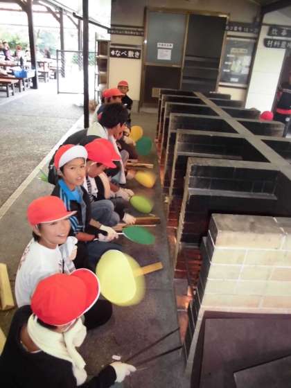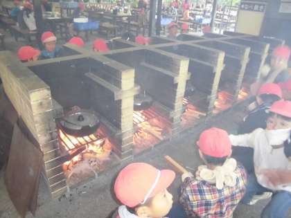 かまど係の子どもたちも,けむりや灰に負けずがんばりました。