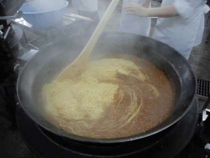毎日ミーティングをして,安全でおいしい給食が届けられるように,調理員ひとりひとりが励んでいます。「おいしかった!」の声と笑顔を楽しみに作っています。
