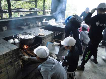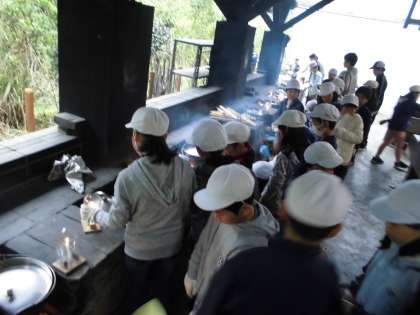 かまどへ運びます。