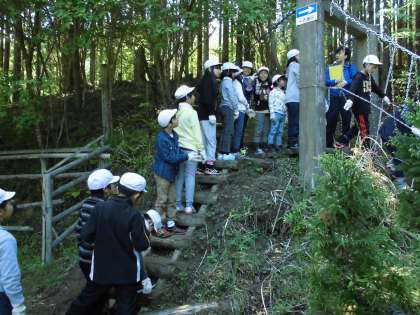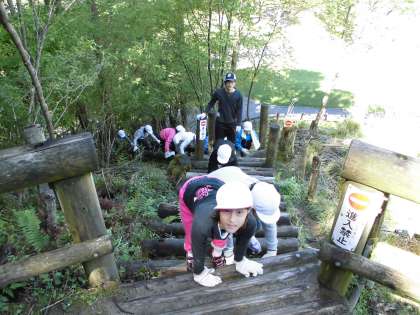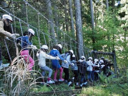どんどん進んでいくみなさん。狭くて揺れる吊り橋や高い所も平気!?元気いっぱいです。