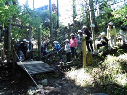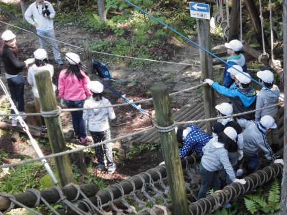 すがすがしい天候の中どきどきわくわく楽しい時間を過ごしました。少し休憩をして今から野外炊事です。