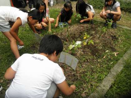 写真はガーデニングクラブの収穫の様子と,卓球クラブの試合の様子です。
