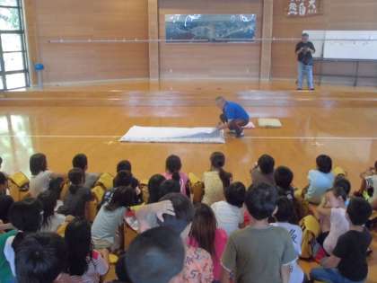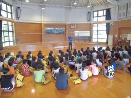 プレイホールで職員の方に寝具の使い方や所内のことをくわしく聞きました。しっかり聞けたのでほめてもらいました。