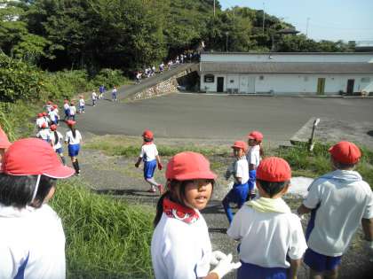 みんなの楽しみ磯観察に向けてみさきの家から歩きます。