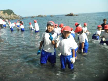 干潮が早朝と日暮れと時間的によくありませんが,安全には十分気をつけて海に入って観察をしました。