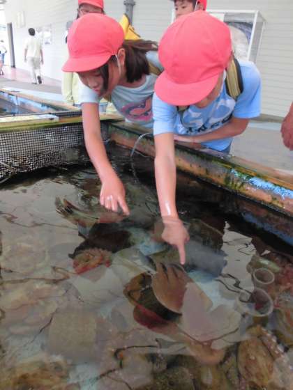 子ども達はタコやナマコ,ヒトデなどを触って大興奮でした!