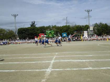 すてきな踊りの後は,みんなでみこしをかついで競争です。協力して頑張りました。