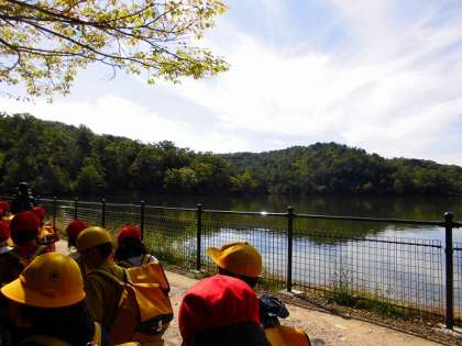 さわやかな秋の涼しい風が吹く良いお天気の中,宝が池公園へ行ってきました。バスを降りてから,池の周りの道を通り「子どもの楽園」まで歩きました。山の木が少し紅葉し始めていました。子どもちはそれぞれに,どんぐりや赤く紅葉した葉っぱなど,楽しそうに秋を見つけていました。