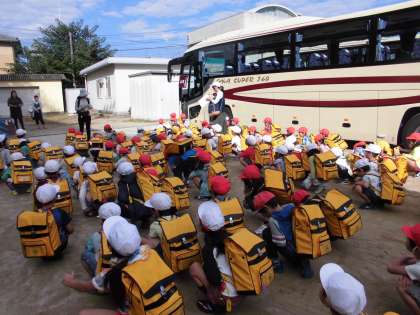 出発前に,楽しい遠足にするためのお話を小川先生から聞きました。