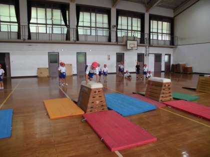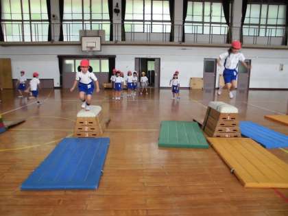 体育で「とびばこあそび」の学習をしました。跳び箱にジャンプして乗ったり,開脚跳びの練習をしたり,子ども達は久しぶりの跳び箱を楽しみながら,取り組んでいました。