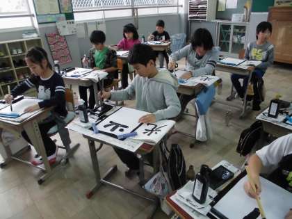 毛筆の学習かありました。はらいやはねなど,たくさん気を付けることがありましたがゆっくりと丁寧に書くことができました。