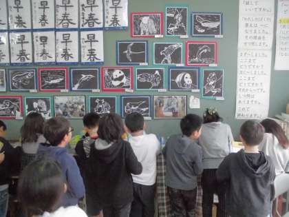 鑑賞の学習では,自分の作品や友達の作品のいいところを見つけました。