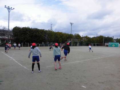 体育では「ハンドベースボール」の学習をしています。だんだんとルールにも慣れ,勝つためにはどうするのか,チームで協力し合いながらも楽しんで学習することができています。