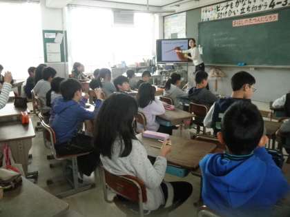 今日は久保田先生と一緒に,「おはしの持ち方」について学習しました。