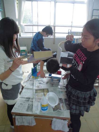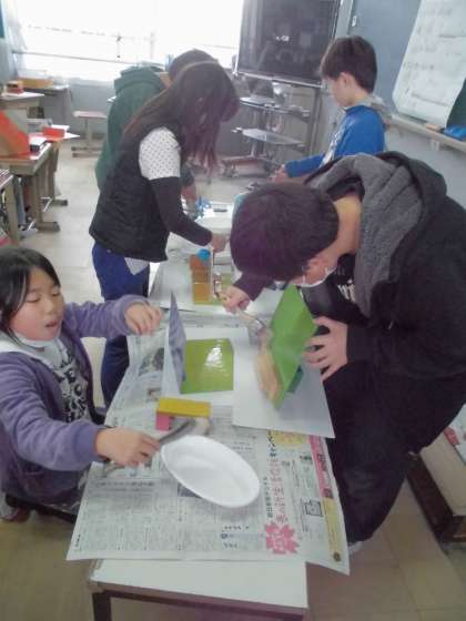 今日は作品の組み立てやニス塗りをしました。