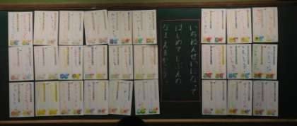 完成したものを黒板に貼り,