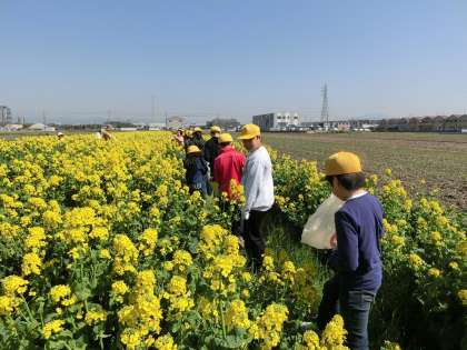 今週,2年生と6年生が学習させていただく久我菜漬体験の準備のために,女性会の方々のご協力のもと菜の花摘みに行ってきました。ただ菜の花を摘むだけではなく,自分達の学習のために今まで大切に菜の花を育ててくださった方々への感謝の気持をもって,菜の花摘みを行いました。明日はいよいよ久我菜漬体験です。