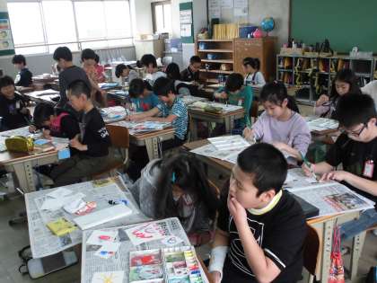 5年生は図工の学習で「心のもよう」に取り組んでいます。