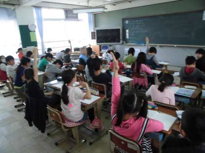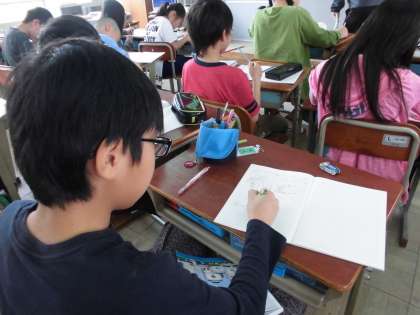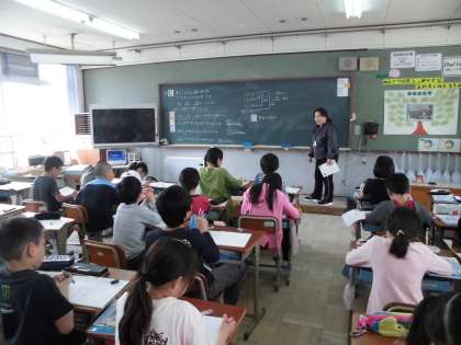 5年生は算数の授業で「整数と小数」について学習しています。前回の学習を生かして予想したり,まとめたりと自分たちで学習する姿が見られました。最後まで集中して楽しく取り組むことができました。