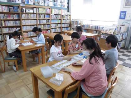 放課後まなび教室5・6年生が開講し,図書室で学習する子どもたち。