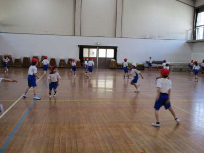 2年生の体育館での体育の授業では,「あおにあそび・すもうあそび」をしています。