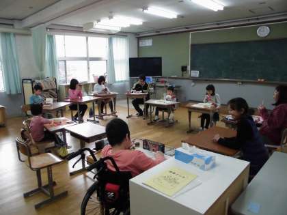 給食が始まって2週間。1年生も時間いっぱいしっかり食べられるようになってきました。「ごちそうさま」まで給食が早く終わった4年生〜6年生は,本を読んだり絵を描いたりして過ごしています。時々「1年生がんばって食べてね」と上級生の励ましの声もあります。和やかな給食の時間です。