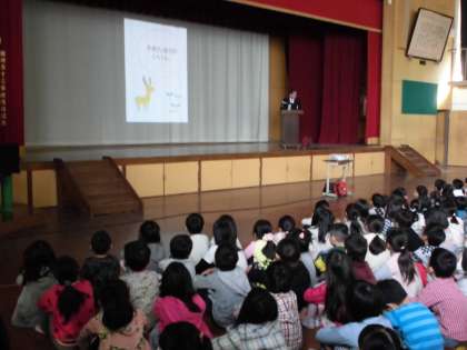 新年度がはじまって一カ月。新しい環境にも慣れてきたみなさん。朝からしっかりあいさつができました。校長先生のパワーポイントを使った朝会でのお話をきき,きまりや約束は何のためにあるのかをしっかり考えることができました。みんなが笑顔で気持ちよく過ごせる神川小学校にしていきたいと思います。