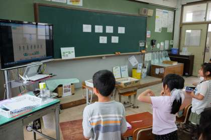 今回は,ジェスチャーを使って,挨拶をする練習をしています。