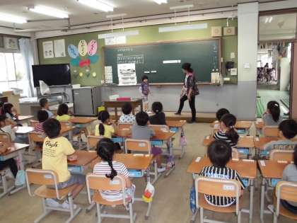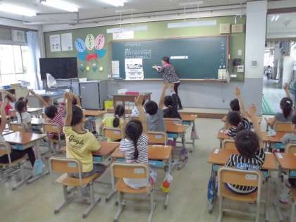 先生が順にならべたものを見て気が付いたことを発表しあったり,8個のおはじきを使って,となりのお友達とゲームをしたりして,楽しく学習しました。