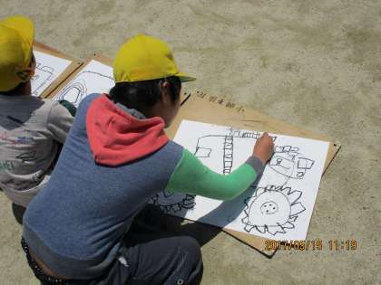 避難訓練の後は,消防車・救急車を写生しました。
