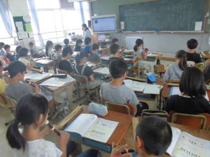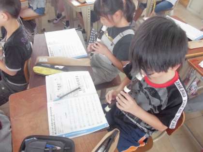 5年生は音楽の授業で「小さな約束」をリコーダーで演奏しています。上のパートと下のパートを練習し,最後にはみんなで合わせて演奏しました。自分の音とみんなの音をよく聞いて演奏することができました。