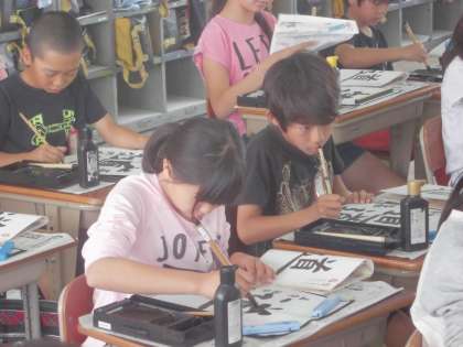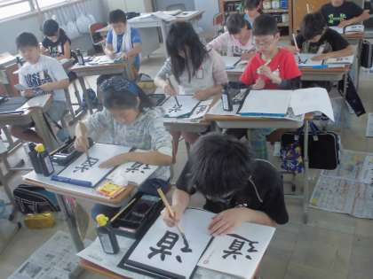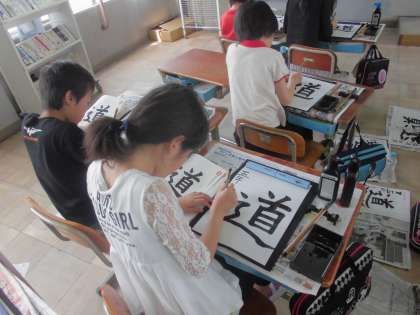 5年生は毛筆書写で「道」を書きました。文字の組み立て方と穂先の動きに気をつけて丁寧に書くことができました。最後まで集中して取り組むことができました。