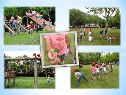 お昼の後は,大きな広場でおにごっこやだるまさんが転んだで遊んだり,