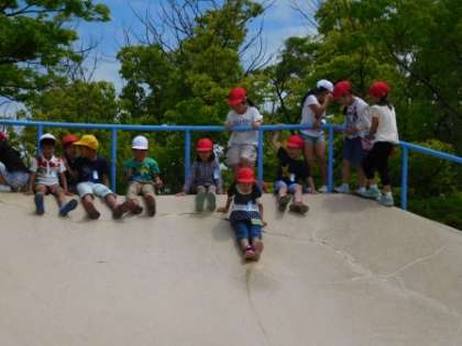 初めて見るすべり台にわくわくしていました。