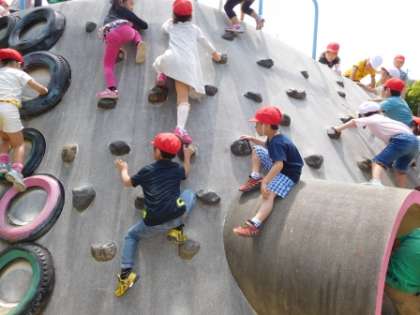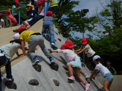 子どもたちの想像より高いすべり台で